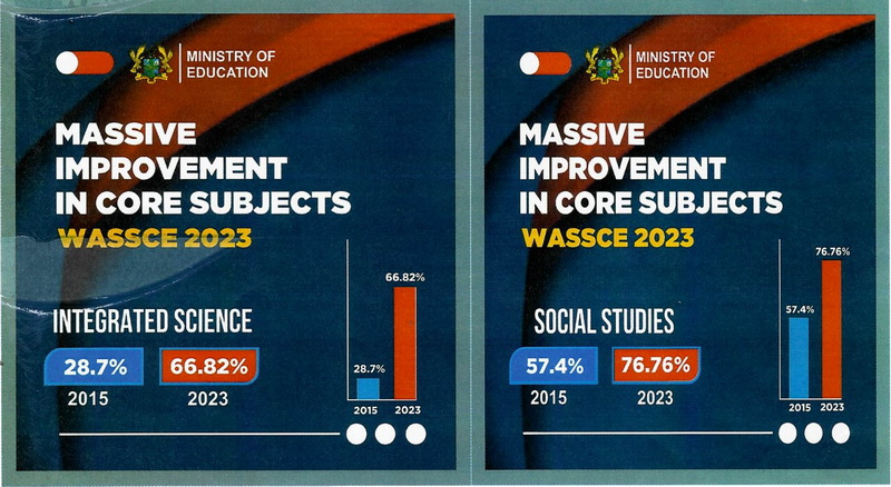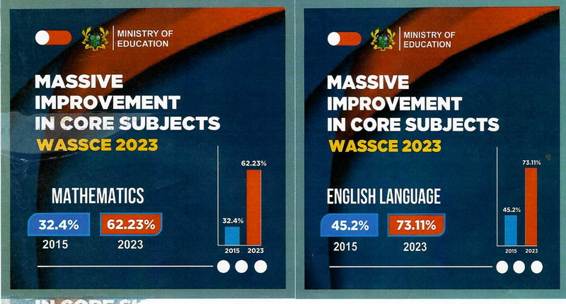In a press statement sighted by JoyNews, the MoE stated that “we have made monumental progress in core subjects from an average 40.93 percent score (A1 –C6) in 2015 to a highly improved average of 69.73 percent score (A1 – C6) in 2023.”
