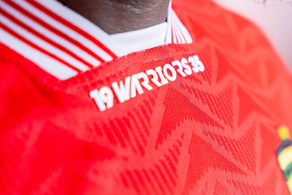 The Home Kit Features the red and white colors of the Jersey designed with a striking zig‑zag side pattern and white accents on the collar and cuffs. The jersey also carries a subtle tribute message — “#WEAREKOTOKO25‑26” beneath the collar. Its craftsmanship blends heritage and modern flair.