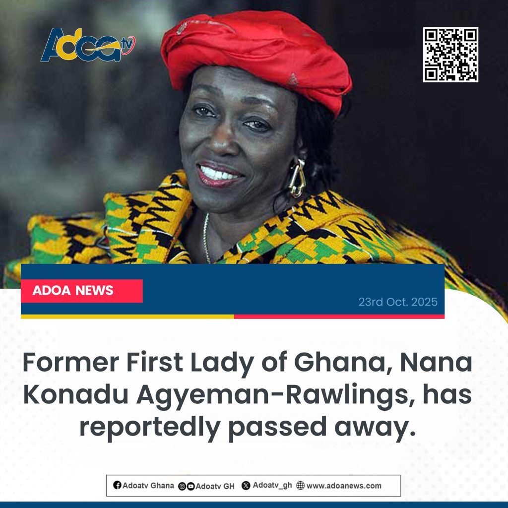 Former First Lady of Ghana, Nana Konadu Agyeman-Rawlings, has reportedly passed away at the Ridge Hospital in Accra. She was 76 years old.