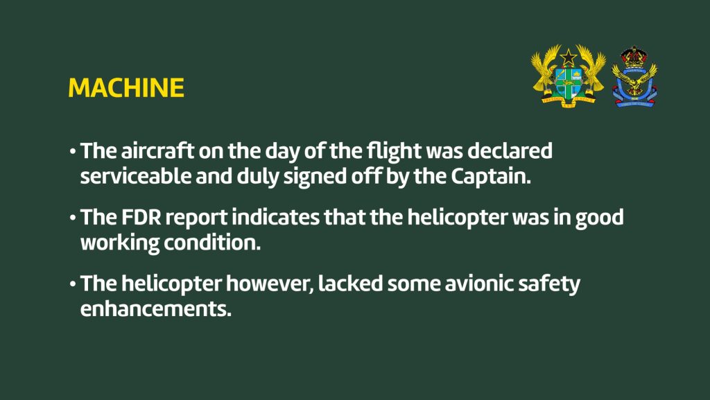 Presenting details of the report at a press briefing on Tuesday, November 11, Captain (Rtd) Paul Forjoe, a member of the committee, disclosed that the Harbin Z-9EH helicopter, operated by the Ghana Air Force, was declared serviceable prior to take-off but lacked several modern safety systems.