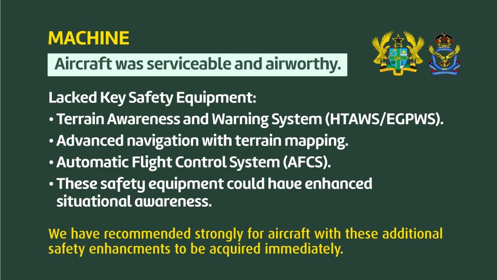The committee’s final report, presented under the supervision of National Security Coordinator Abdul-Osman Razak, also included a series of safety recommendations aimed at modernising the Ghana Air Force fleet and improving aviation safety standards across the armed forces.