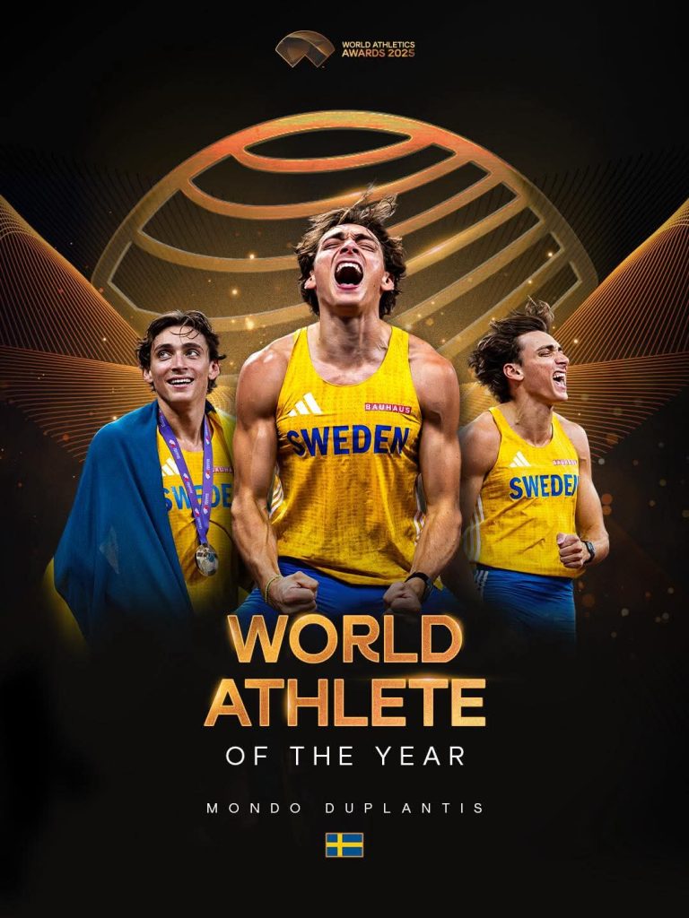 Swedish pole vault superstar Armand “Mondo” Duplantis has been officially awarded the title of World Athletics Male Athlete of the Year for 2025.