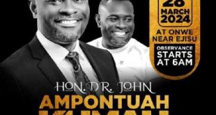 The final funeral rites of the late Member of Parliament for Ejisu and deputy finance minister, Dr. John Ampontuah Kumah, has been scheduled for May 18, 2024. The funeral, according to the family’s arrangement, will be held at Onwe, a suburb of Ejisu where his one-week observation took place. The …
