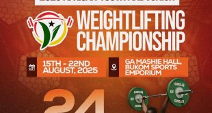 Story by Isaac Mortey Ghana will host the 2025 African Youth and Weightlifting Championship at Bukom Sports Emporium in the month of August Slated from 15th to 22nd August, 2025, at the GA Mashie Hall of the Trust Sports Emporium. The Championship is been organized by the Ghana Weightlifting Federation …